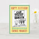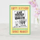 O homem atrás do balcão de uma oficina automotiva e de um centro de atendimento a carros tem uma ótica de bebidas fortes como "amortecedores", que sugerem que as contas são altas. Cartão ideal para qualquer Gerente de Garagem envolvido no comércio de automóveis.