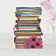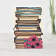 Se você tem um amigo que adora livros e leitura, então este é o cartão de aniversário perfeito para eles! Uma pilha de livros e flores da arte.