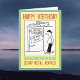 Engraçado cartoon de um homem olhando para um cartaz no portão do pátio. A placa diz "Car Boot Sale". Cartão ideal para qualquer trabalhador de metal de sucata.