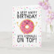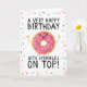Envie um sorriso de aniversário com este cartão de saudação engraçado e colorido! Com uma ilustração de uma rosquinha fofa de kawaii e as palavras "Um aniversário muito feliz com aspersores no topo!". Você pode encontrar mais produtos com esta rosquinha fofa em nossa loja!