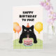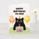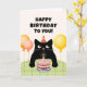 Cartão Feliz aniversário para você com gatinho preto e bo