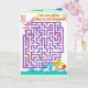 Cartoon Bonito Dinossauros Labirinto Cartão de Saudações do Jogo Quebra-cabeça do Labirinto. Você pode trazer o desenho T-Rex através do labirinto para seus amigos Stegossauro azul, Diplodocus laranja e Tricerátops amarelos? Dentro do desenho animado T-Rex, Stegosaurus, Diplodocus e Tricerátopo, feliz, com o cartão, numa paisagem pré-histórica, com árvores, montanhas e vulcões e estrelas a cores. Este cartão de jogo de quebra-cabeça de labirinto de dinossauro de excelente é totalmente personalizável, adicione seus textos e imagens! Uma página de jogo de dinossauros excelentes para os grandes fãs de dinossauros!