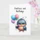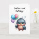 Adicione um pouco de humor para alguém especial com este pássaro fofo segurando balões no cartão de aniversário. Penas e aniversários, um combo perfeitamente rabugento!