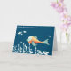 Este é um desses cartões para tesouro. O pequeno peixe na frente é tão feliz que é seu aniversário. Este peixe azul-turquesa e laranja contrasta com o fundo azul-marinho escuro. Alguns corais leves turquesas e peixes estão decorando o resto do cartão. Personalize o texto com sua própria mensagem. Ilustrada e projetada por Patricia Alvarez.
