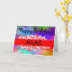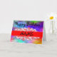 Feliz aniversário. Personalizar com o Nome. Dentro vazio. Um banner vermelho para o nome do destinatário com flores cor-de-rosa e brancas, sobre um fundo colorido.
