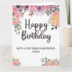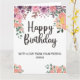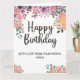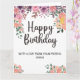 Cartão Feliz aniversário | Placa de flores rosa Dourada e