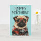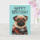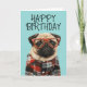 Cartão Feliz Aniversário | Pug de Camisa Xadrez