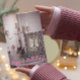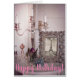Feliz aniversário! Cartão de Saudação De Foto Da Torre Eiffel Vintage. Fotografia a preto e branco da famosa Torre Eiffel em Paris, França, num quadro fotográfico vintage, decorada com um porta-velas, algumas joias retrô e um rosa.