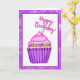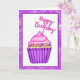 Bonito cor-de-água rosa e cupcake roxo com cartão de aniversário de aspersores para ela.