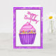 Cartão Feliz aniversário, rosa e cupcakes roxos