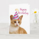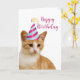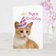 Se você gosta de gatos, então vai adorar esse cartão de aniversário fofo do seu gato. Este cartão apresenta um adorável gato malhado laranja usando um chapéu de aniversário. Há uma saudação de seu gato dentro que você pode personalizar com suas próprias palavras.