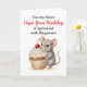 Um cartão de aniversário adorável para uma sobrinha com uma ilustração de um ratinho fofo carregando um cupcake de baunilha com confeitos e uma cereja no topo! Todo o texto deste cartão pode ser editado na área de personalização.