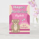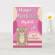 Personalize este Cartão de Aniversário Feliz para uma neta especial Projetada em rosa, creme e marrom, com um ursinho de pelúcia fofo. Adicione um nome e sua mensagem. Feliz Aniversário Com Amor