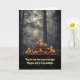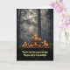 Um cartão de aniversário mágico místico, com velas acesas numa floresta escura e um poema de bênçãos e magia.