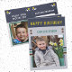 Cartão de aniversário do neto. Adicione duas fotos, nome e mensagem. Projetado em verde, amarelo, cinzas, com listras e pontos. Melhor criança de sempre.