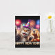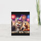 Cartão Feliz Ano Novo 2026 Arte de Festa de Gato Fofo Cap