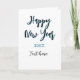 Cartão Feliz ano novo azul preto negrito simples ano eleg