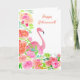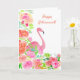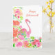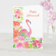 Cartão Feliz Aposentadoria Aquarela Flamingo Com Flores