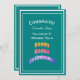 Cartão de aposentadoria parabéns você conseguiu, moldura azul turquesa e tipografia multicolorida com um espaço para inserir o nome e uma mensagem divertida no verso.
