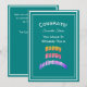 Cartão de aposentadoria parabéns você conseguiu, moldura turquesa e tipografia multicolorida com um espaço para inserir o nome e uma mensagem divertida no verso.