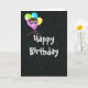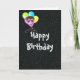 Buquê colorido de balão com cabelo, sorriso e óculos de sol aviadores em um fundo brilhante e texto feliz de aniversário. O texto é editável.