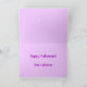 Cartão de saudação de morcego de Halloween sobre fundo violeta leve. O texto pode ser personalizado. Um mensageiro saudando Bat sugere que siga sua intuição!
