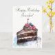 Feliz Bolo de Chocolate de Aniversário com Cartão de Aniversário de Vela