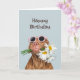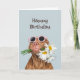 Cartão Feliz Cão de Aniversário com Flores Humor Animal