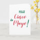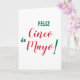This fun and festive card has the message "Feliz Cinco de Mayo!" in green and red brush lettering on a white background. The inside of the card is blank for your personal message.