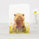 Este cartão de saudação adorável mostra uma alegre capybara sentada contente entre flores amarelas brilhantes. Criado num delicado estilo aquoso, o sorriso gentil de capybara e a pose relaxada trazem à ilustração um charme quente e amigável. Os tons suaves e pastéis e o design bicho tornam esta carta perfeita para amantes da natureza e para entusiastas dos animais. Seja por um aniversário, obrigado, ou apenas por uma mensagem de alegria, este cartão captura um momento lúdico na natureza, trazendo um toque de felicidade e alegria a qualquer ocasião. Ideal para aqueles que apreciam arte animal pacífica e a beleza da vida selvagem.