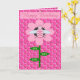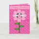 Esta divertida carta de aniversário apresenta uma imagem gráfica de um belo abelhão rosa com listras rosa brilhantes, olhos pretos, antenas cor-de-rosa e pernas pretas. Tem asas bonito, azuis e brancas. A abelha está sentada no meio de um girassol rosa bonito. A flor tem um caule verde e três folhas. A mensagem "Bee Day Girl" aparece espalhada sobre as três folhas. O fundo é composto por um padrão rosa brilhante de mel. Há também uma saudação personalizável na frente e um dentro de mensagem do cartão.
