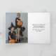 Feliz cartão de Dia das Bruxas com uma abóbora sorridente adornada com flores laranja e um dentro de fotos. Personalize facilmente este cartão de Dia das Bruxas fofo com o seu nome familiar, fotografia e texto.