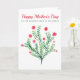 Cartão do Dia das Mães com um desenho a tinta e aquarela de uma flor de primavera abstrata em rosa e verde sobre fundo branco personalizável. Este cartão de mãe elegante apresenta o texto personalizável "Feliz Dia das Mães para a melhor mãe do mundo".