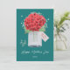 Lindo cartão do Dia das Mães personalizado com flores verdes, destacando hidrangeas vermelhas e baby's breath dentro de um jarro de Mason. Luzes de corda e estrelas cintilantes adicionam um charme mágico a este fofo design floral. Um grande coração floral com texto personalizado no verso.