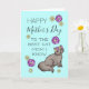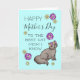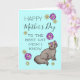 Este cartão apresenta as palavras "Feliz Dia das Mães para a Melhor Mãe de Gato que eu conheço" na frente com desenhos de desenho animado fofos de um gato e flores. O interior diz "Espero que este dia seja repleto de todas as coisas que você ama", que pode ser totalmente personalizado ou removido.