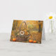 Um cartão delicioso para a sua sobrinha: uma cesta cheia de flores e plantas, enfiada em meio a folhas vibrantes de queda.