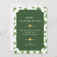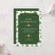 Celebre o Dia de São Patrício com um charme irlandês atemporal. Este cartão de cumprimentos elegante apresenta um fundo verde rico emoldurado por uma delicada borda de trevo e tipografia clássica para um visual refinado e tradicional.