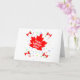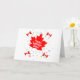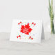 Cartão de saudação com o meu design original de uma folha de mapa vermelha, bandeiras canadenses e confete. O texto diz "Feliz Dia do Trabalho!"