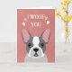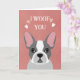 Esta carta adorável apresenta uma ilustração encantadora do Bulldog Francês com tons suaves e neutros, complementados pela frase lúdica, "I WOOF you." Ao redor do texto estão gráficos cardíacos delicados, aprimorando sua sensação quente e amorosa. Contra um fundo cor-de-rosa pastel, esta design é perfeita para expressar afeto, seja para Dia de os namorados, aniversários, ou apenas para compartilhar um pouco de amor filhote. Totalmente personalizável, ele faz uma escolha ideal para amantes de cachorros e aqueles que buscam um cartão divertido mas sincero.