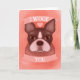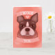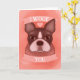 Esta carta carinhosa mostra uma ilustração detalhada de um Bulldog Francês com uma paleta rica e quente, colocada sobre um fundo de coral macio. A design apresenta uma faixa de faixa que enquadra o texto "I WOOF You", com um símbolo cardíaco centrado sobre o cão, enfatizando o tema afetuoso. Perfeito para amantes de cães, este cartão personalizável é ideal para o Dia do Namorados, aniversários, ou qualquer ocasião em que você queira espalhar o amor de uma forma lúdica e inspirada no animal. O seu encanto artístico faz dela uma escolha de destaque para a doação do coração.
