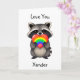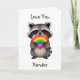 Lindo cartão personalizado do Dia dos Namorados LGBTQ+. Adicione um nome na área de personalização. Lindo guaxinim segurando um coração arco-íris. Este cartão é fofo para casais gays, lésbicas, queer e trans.