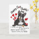 Cartão do Dia dos Pais do seu Bulldogue Francês é certeiro e único. Vamos encarar, seu cachorro precisa da sua ajuda para dizer ao Papai o quão ele é incrível. O que poderia dizer Feliz Dia dos Pais melhor do que este adorável cãozinho Frenchie ajudando a mostrar o quanto você aprecia a pessoa que significou tanto? Este Bulldogue Francês enviará um doce Olá do Dia dos Pais ao seu Pai, irmão, tio, filho... Como resistir a esse rosto? Ele puxa as cordas do seu coração. Certifique-se de verificar a mensagem especial dentro. Todas as mensagens são editáveis, então você pode escrever o que quiser e inserir o nome do seu próprio cachorro. Clique no botão de editar e vá em frente. Será um cartão que ela guardará para sempre. Pegue-o antes que alguém o faça, está disponível apenas aqui. Todos os designs são de propriedade da Nancy Lambert Designs.