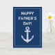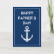 Feliz Dia dos Pais cartão de saudação âncora de barco náutico para o papai. Design de âncora de navio vintage azul marinho e branco para ele.
