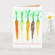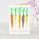 Um cartão de boas-vindas em homenagem ao Dia Internacional do Cenoura, celebrado no dia 4 de abril para educar sobre a cenoura e é bondade com cenouras pintadas com aquarela em laranja, roxo e amarelo/branco.