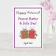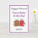 Cartão de Dia Feliz do Sanduíche de Pasta de Amendoim e Geleia. Celebre o Dia Nacional do Sanduíche de Pasta de Amendoim e Geleia com este adorável cartão de cumprimentos! Com uma ilustração divertida de um sanduíche de PB&J na frente, ele se abre para revelar curiosidades divertidas, fatos e uma piada boba sobre o duo de sanduíches favorito de todos. Perfeito para alegrar o dia de um amigo ou surpreender um fã de PB&J, este cartão certamente espalhará sorrisos (e geleia) por todos os lados. Aproveite a nostalgia doce e compartilhe a diversão no dia 2 de abril!