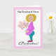 Imagem animada de uma mãe esperançosa, segurando balões em forma de coração. O cartão pode ser personalizado, adicionando seu nome ou mensagem especial. O cabelo e a cor da pele podem ser escolhidos de acordo com o recipiente pretendido.