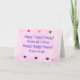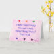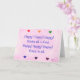 Corações coloridos são pintados em um fundo rosa misturado, com, Happy! Feliz! Feliz! Estamos todos em Deus. Feliz! Feliz! Feliz! Deus está em tudo, impresso na frente de cartões de saudação. O verso dentro diz, Compartilhando o Espírito de conexão no qual todos nós vivemos e respiramos.