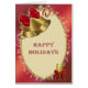 Um belo cartão de Natal não religioso. Ouro com fitas vermelhas. Envie cartões de natal com esta placa tradicional na moda.