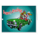 Um Papai noel afro-americano entregando presentes em um Mustang verde!