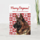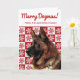 Cachorro german shepherd festivo Feliz cartão de Natal para o amante do cão. Feliz Dogmas! Personalize o nome da família e adicione sua saudação pessoal no dentro da placa.